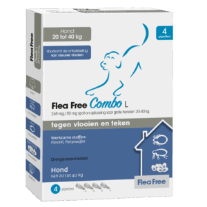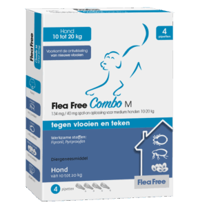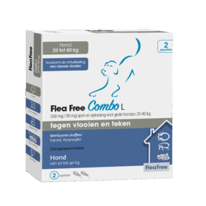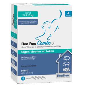 Flea Free spot-on is een vlooienpipet met de werkzame stof Fipronil. Na toediening van deze teken- en vlooiendruppels met handige drop-stop-pipet is je puppy of kitten beschermd tegen vlooien (8 weken bij honden en 5 weken bij katten) en beschermd tegen teken (tot 4 weken bij honden en tot 2 weken bij katten.) Daarnaast doodt de werkzame stof binnen 24 uur de aanwezige vlooien en binnen 48 uur de aanwezige teken.